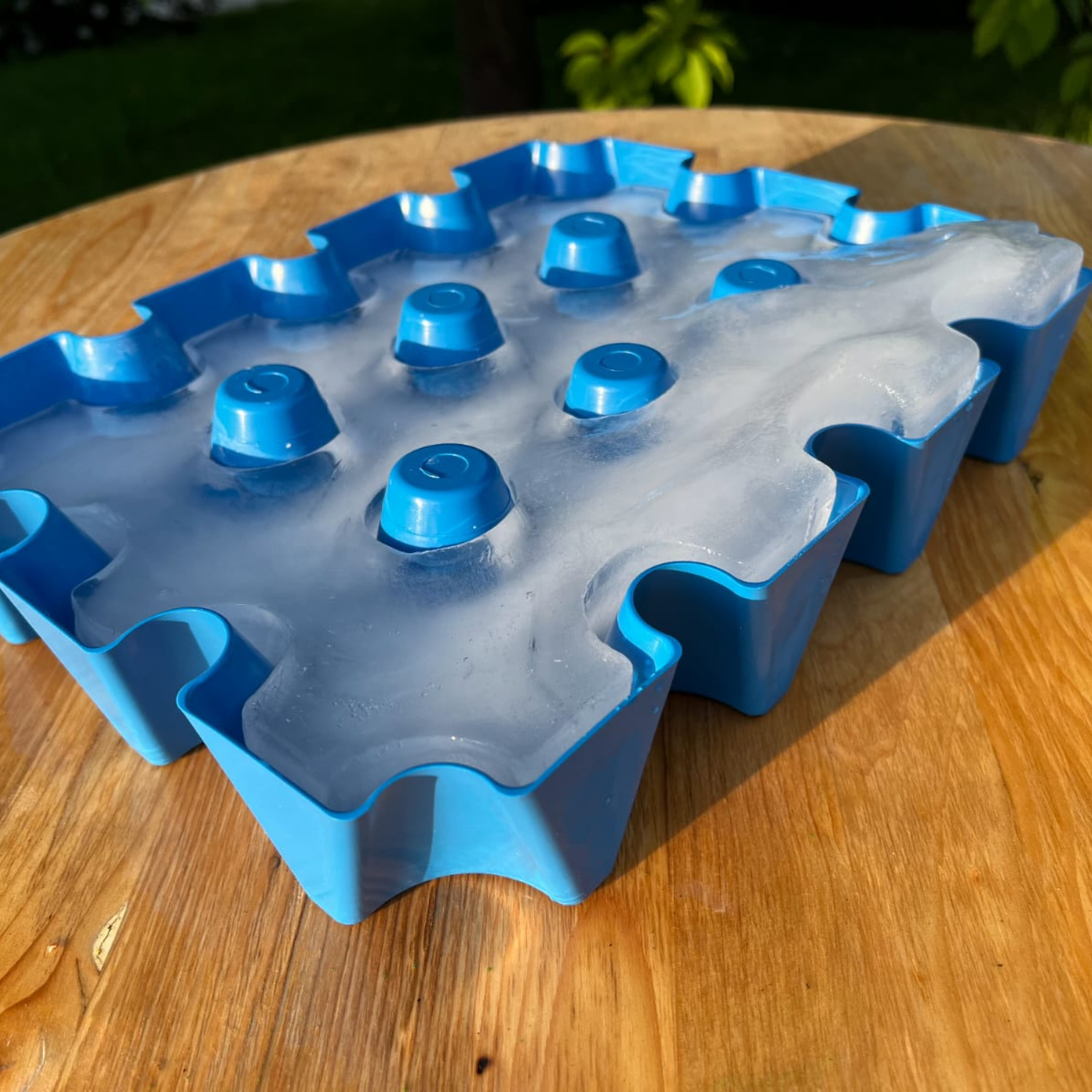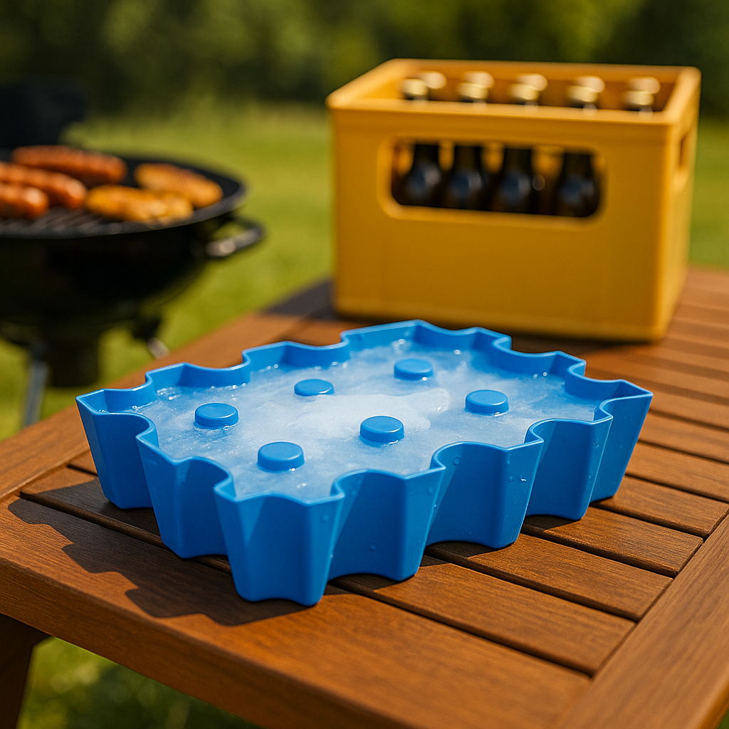 Mit Wasser befüllen, über Nacht einfrieren und einfach in den Bierkasten einsetzen – die Aussparungen passen perfekt über die Flaschenhälse und sorgen für maximale Kühlleistung.
